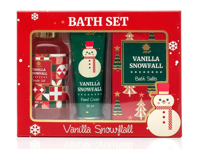 Vianočne ladená sada ARÔME Vanilla Snowfall prináša do kúpeľne hrejivú zimnú atmosféru a sladkú vôňu vanilky. Set pre dokonalý relax obsahuje sprchový gél, kúpeľňovú soľ aj voňavý hydratačný krém, ktoré sú zabalené v červenej krabičke s motívom snehuliaka. Darčekové balenie kozmetiky predstavuje krásny a praktický present pre každého, kto si rád dopraje chvíle pokoja a starostlivosti.