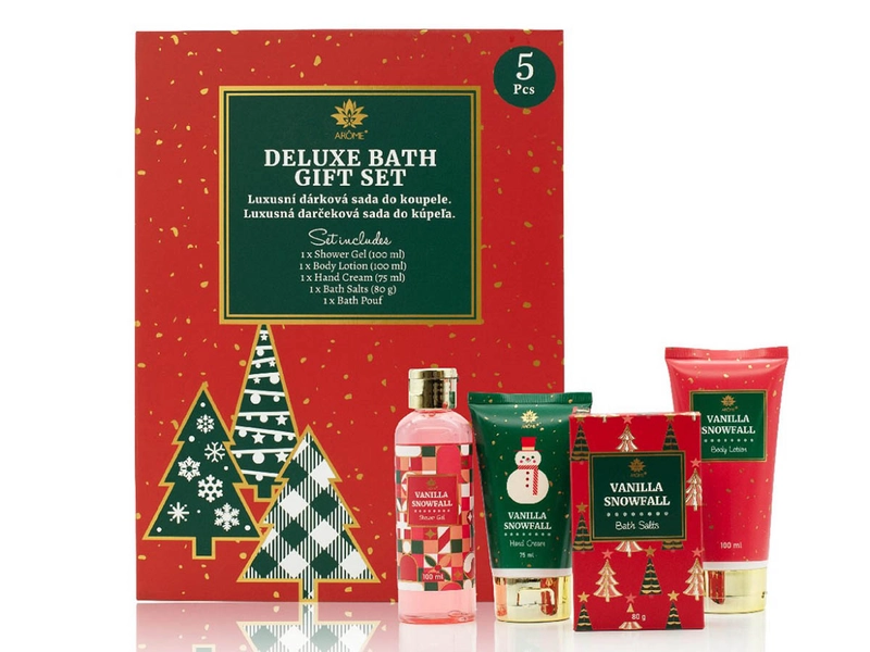 Elegantne zabalený set kozmetiky, ktorý premení bežnú starostlivosť o telo na kúzelný rituál pohody. V designovej červenej krabičke nájdete: sprchový gél, telové mlieko, krém na ruky, kúpeľovú soľ a jemnú kúpeľovú špongiu. Vianočná kozmetika nepoteší len vás, ale aj ako darček pre ženu pod vianočným stromčekom.