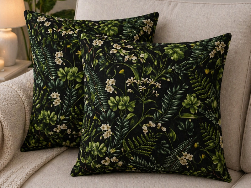 Povlaky LESNÁ NOC prinesú do vášho domova pokojnú atmosféru inšpirovanú prírodou. Jemný motív listov a bielych kvetov v odtieňoch tmavozelenej na čiernom podklade pôsobí elegantne a harmonicky. Kvalitná 100 % bavlna Renforcé je príjemná na dotyk, odolná a vhodná na každodenné používanie. Balenie obsahuje 2 ks obliečok s rozmerom 40x40 cm, ideálne na dekoratívne vankúše.