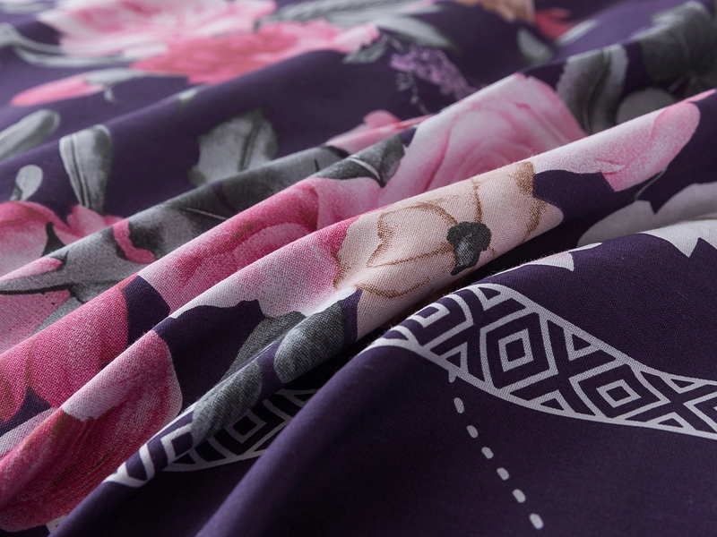 Bavlnené obliečky s motívom kvetov na tmavo fialovom podklade v sebe snúbia romantický štýl aj eleganciu. Nechajte sa uniesť do vĺn sladkého spánku v náručí 100% bavlny, ktorá má vynikajúce termoregulačné schopnosti, je odolná a dobre absorbuje vlhkosť.