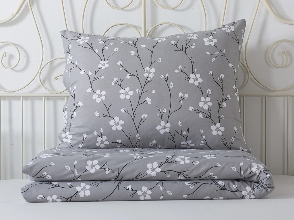 Bavlnené obliečky a vzor kvetov sakury premenia vašu spálňu na rozkvitnutú záhradu. Sivý podklad a záplava kvetov evokuje prírodu a vy sa tak v miestnosti budete cítiť príjemne a uvoľnene každý deň. Materiál z bavlny Renforcé radí posteľnú bielizeň medzi luxusné obliečky. Jemne tkané vlákna bavlny ponúkajú žiaduce vlastnosti, ako je mäkkosť, savosť a vzdušnosť čo prispeje ku kvalite spánku. Odolnosť materiálu a farieb vám dáva priestor na použitie vyšších teplôt prania.