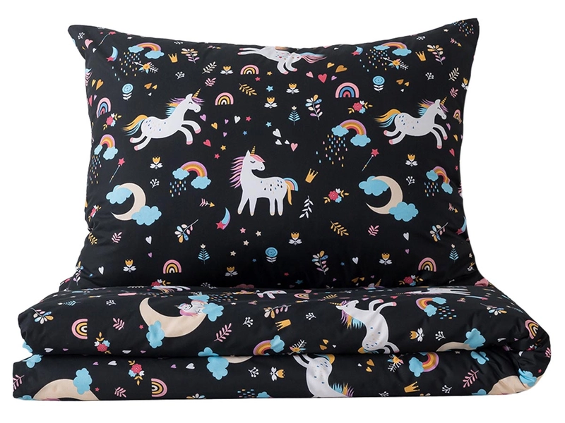 Doprajte svojmu dieťaťu sladké sny v kúzelnom svete jednorožcov! Obliečky JEDNOROŽCI sú vyrobené z kvalitnej 100% bavlny, ktorá je jemná na dotyk, priedušná a príjemná k detskej pokožke. Obliečky sú obojstranné - z jednej strany zdobia látku roztomilí jednorožce na čiernom podklade, z druhej strany potom rovnaký motív na bielom podklade, vďaka čomu môžete ľahko meniť vzhľad postele podľa nálady.
