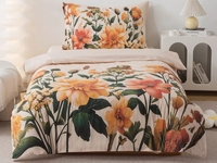Obliečky so záplavou kvetov v krémovej, béžovej, až oranžovej farbe na svetlom základe, pre jarné aj letné spálne, kde sa snúbi elegancia s jemnosťou a kde rozkvitajú sny. Tieto bavlnené obliečky sú nielen pastvou pre vaše oči, ale určite si užijete aj každý dotyk hladkej a priedušnej bavlny. Oceníte odolnosť, stálofarebnosť i celoročné využitie s dlhou životnosťou materiálu, kedy tieto renforcé obliečky nestrácajú na kráse ani po opakovanom praní.