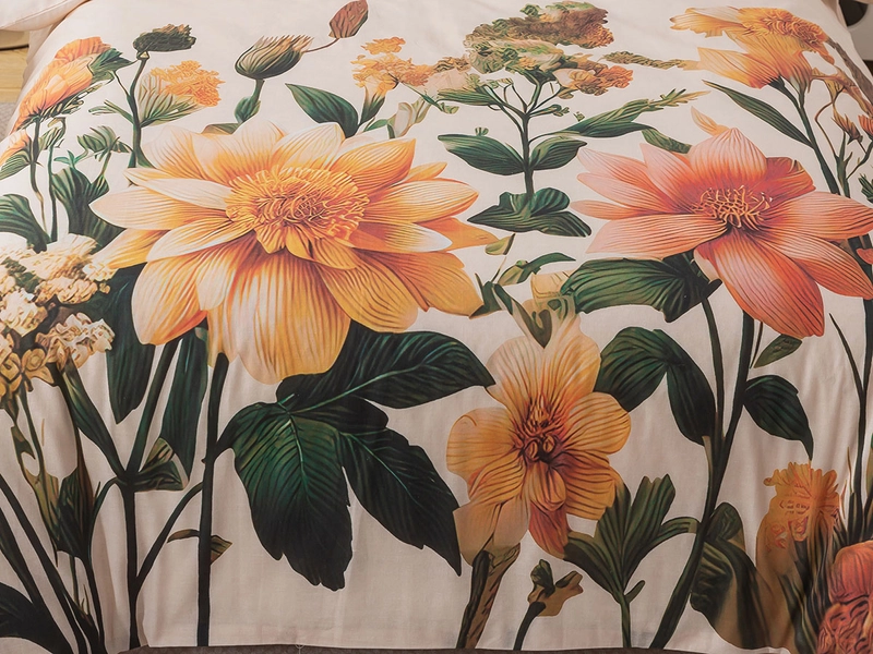 Obliečky so záplavou kvetov v krémovej, béžovej, až oranžovej farbe na svetlom základe, pre jarné aj letné spálne, kde sa snúbi elegancia s jemnosťou a kde rozkvitajú sny. Tieto bavlnené obliečky sú nielen pastvou pre vaše oči, ale určite si užijete aj každý dotyk hladkej a priedušnej bavlny. Oceníte odolnosť, stálofarebnosť i celoročné využitie s dlhou životnosťou materiálu, kedy tieto renforcé obliečky nestrácajú na kráse ani po opakovanom praní.