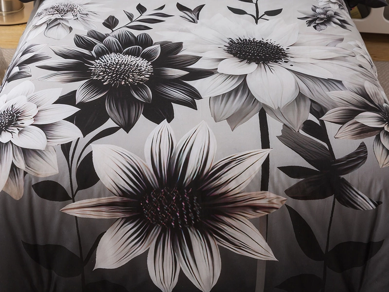 Kvetinové obliečky a tón sivej farby pre milovníkov spánku v bavlne