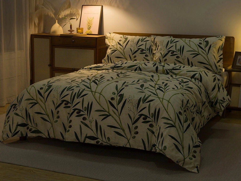 Bavlnené obliečky a vzor olív sú ideálne pre milovníkov prírodných dezénov