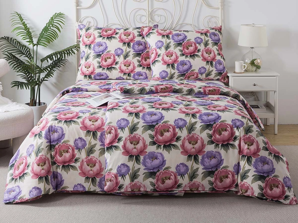 Vneste do svojej spálne sviežosť rozkvitnutej záhrady s obliečkami PIVOŇKY. Jemný kvetinový motív v elegantných odtieňoch ružovej a fialovej pôsobí romanticky aj moderne zároveň a bude ozdobou ako v spálni, tak aj v izbe vašej slečny. Vďaka kvalitnému materiálu zo 100% bavlny Renforcé si užijete maximálne pohodlie a pokojný spánok každú noc. Krásne kvetinové obliečky sú ideálne aj ako darček pre ženu.