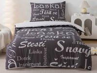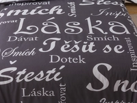Bavlnené obliečky a sivo - biela farebná kombinácia ponúkajú moderný vzhľad, kde vzor tvoria pozitívne a motivačné slová ako napríklad ŠŤASTIE, Láska, DOTYK, ... ktoré dodajú priaznivú energiu do každého rána. Táto posteľná súprava s prehľadom doladí interiér spálne aj detskej izby. Obliečky Renforcé sú vyrobené z bavlny s úpravou renforcé, ktorá je jemná a odolná. Renforcé bavlna nedegraduje ani materiálom ani farebnosťou, a preto sa tento produkt radí medzi luxusné obliečky, ktoré si zachovajú svoj vzhľad aj po opakovanom praní. Oceníte odolnosť, stálofarebnosť i celoročné využitie s dlhou životnosťou materiálu, kedy tieto renforcé obliečky nestrácajú na kráse ani po opakovanom praní.