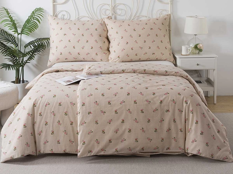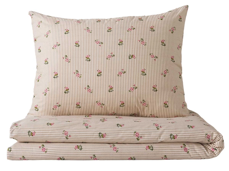 Doprajte si pokojný spánok v obliečkach, ktoré spájajú romantický nádych a nostalgiu v objatí náručia našich babičiek i mamičiek. Jemný prúžok v kombinácii s ružovým vzorom drobných kvietkov ruží vytvára nežný, harmonický vzhľad, ktorý zútulní každú vintage spálňu, alebo krásne doladí chalupu. Renforcé obliečky z kvalitnej 100% bavlny vynikajú svojou hebkosťou, priedušnosťou a dlhou životnosťou. Vďaka príjemnému bavlnenému materiálu je táto luxusná posteľná bielizeň ideálna na celoročné použitie. Renforcé tkanina sa ľahko udržuje, je odolná voči častému praniu a farby na posteľnej súprave si dlhodobo zachovávajú svoju sviežosť.