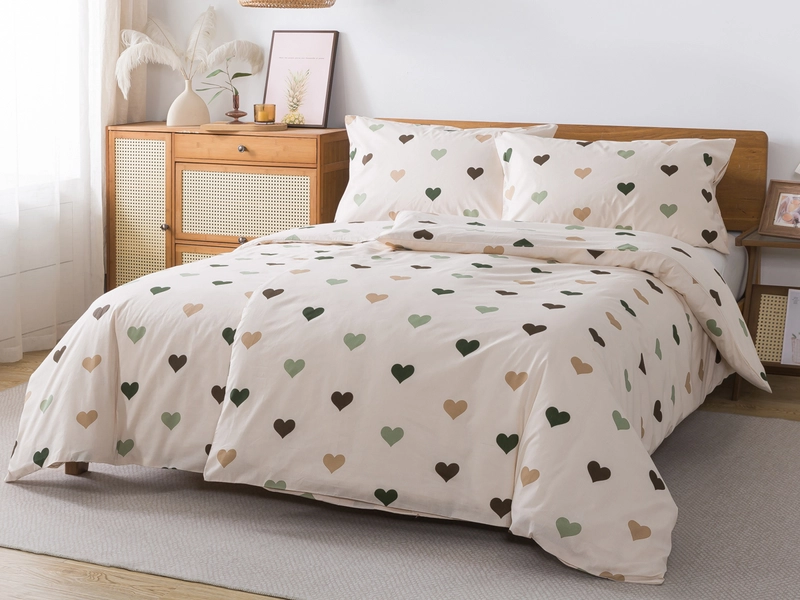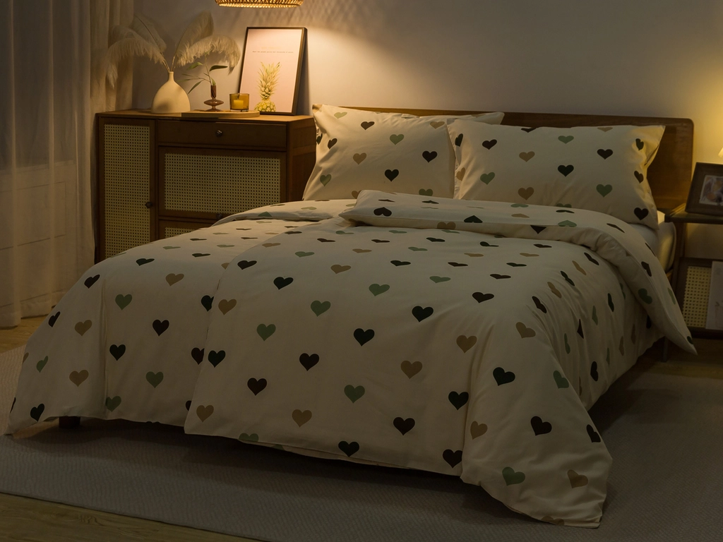 Béžové obliečky so srdiečkami pre kvalitný spánok v bavlne