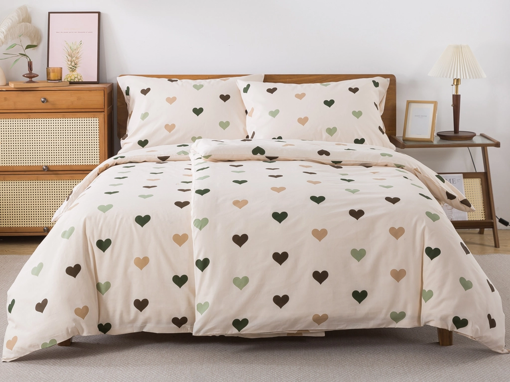 Béžové obliečky so srdiečkami pre kvalitný spánok v bavlne