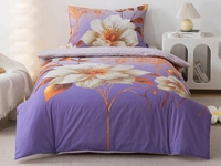 Milujete kvety a netradičný design? Obliečky VILMA sú pre vás ako stvorené. Nielenže veľké kvety krásne osviežia miestnosť, ale vo farbe krémového kvetu a fialového podkladu navodia pokojnú atmosféru pre kvalitný spánok. Renforcé obliečky z bavlny sú hladké a príjemné na dotyk s dobrou savosťou a odolnosťou voči opotrebovaniu či strate farby. Obliečka na prikrývku je na spodnej strane jednofarebná - svetlo sivá, obliečka na vankúš má potlač z oboch strán.