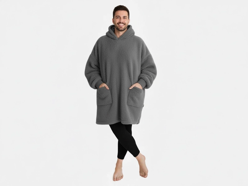 Mikinové deky s obojstranným baránkom sú veľmi mäkké a pohodlné na dotyk, čo ich robí obľúbenými pri relaxácii po celý deň. Táto sivá mikina vám urobí radosť nielen pri odpočinku doma. Deka s rukávmi a kapucňou vás príjemne zahreje dvojitou vrstvou baránku, a to pokojne pri televízii, pri čítaní knižky, alebo rovnako ako mikroplyšová deka, tak aj teplá mikina dobre poslúži na terase za chladného počasia. Táto oversize mikina má UNI veľkosť (rozmery viď fotografie) a dopraje pohodlie pre ženy aj pre mužov. Sú veľmi ľahké aj skladné, a tak si ich môžete pribaliť spoločne so županom a mať pohodlie aj na dovolenke či na chate. A údržba? Mikinové deky z baránku stačí rovnako ako mikroplyš vyprať, vysušiť pokojne aj s použitím sušičky na jemný program s nižšou teplotou a opäť sa môžete zababušiť do teplúčka.