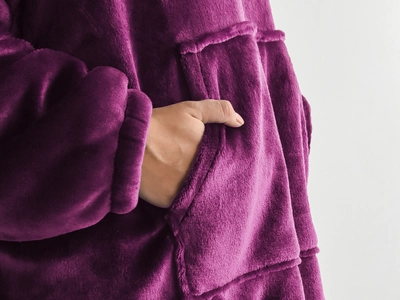 Mikroplyšová mikinová deka s barančekom - karmínová