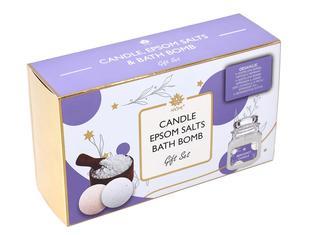 | Obsah balenia | 1 sviečka, 2 kúpeľové bomby, 1 kúpeľová soľ |