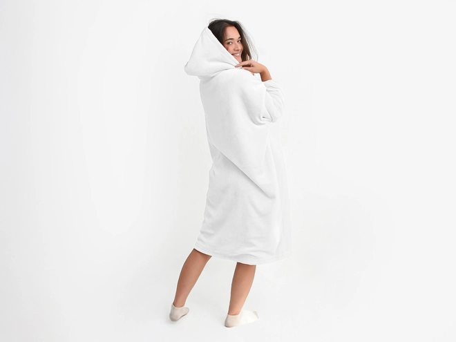 Mikroplyšová mikinová deka - biela