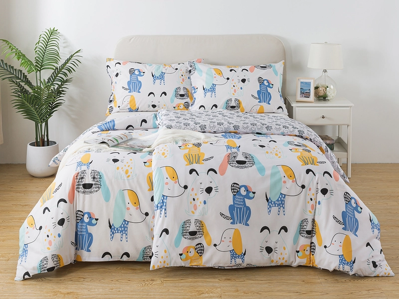 Flanelové obliečky zaistia krásne farby aj hrejivú bavlnu do chladných dní. Rozveseľte svoju posteľ farebným vzorom psíkov a labiek a ozdobte si spálňu či detskú izbu. Bavlnené obliečky 140x200 ponúkajú vzor psíkov v dominantnej modrej a žltej farbe a zo spodnej strany ho efektne dopĺňajú čierne labky na bielom podklade. Táto posteľná súprava vás príjemne prekvapí jemnosťou a na dotyk aj hrejivým materiálom. Bavlna česaná do flanelu ponúka žiaduce vlastnosti, ako je mäkkosť, savosť, vzdušnosť a príjemné teplo čo prispeje ku kvalite spánku.