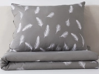 Je čas na jemnosť a vzdušnosť so vzorom pierok. Francúzske bavlnené obliečky a ľahkosť vzoru pierok na šedom podklade sú to pravé pre pokojnú a jemnú atmosféru v každej spálni. Neutrálna farebná kombinácia dáva priestor pre doplnky vo farbe podľa vašej nálady. Oceníte aj vlastnosti bavlny, ktorá má vysokú savosť, vzdušnosť a odolnosť materiálu.