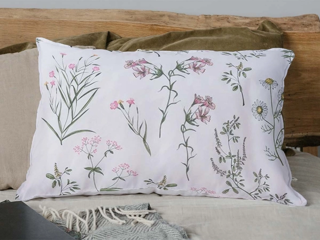 Túžite rozprúdiť jarnú energiu aj vo vašej spálni? V tom prípade stavte na kvetinové obliečky, ktoré vnesú sviežosť aj ľahkosť lúčnych kvetov na vaše lôžka. Biely podklad obliečok a vzor s akcentom zelenej a ružovej farby pôsobia v interiéri čisto a vzdušne. Navyše oceníte prírodné vlákna bavlny, ktoré sú na posteľnú bielizeň ideálne. Ponúkajú vlastnosti ako vzdušnosť, savosť aj jemný hladký povrch, čo je ideálne pre spokojný a kvalitný spánok.