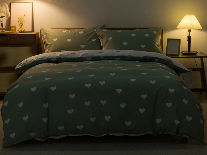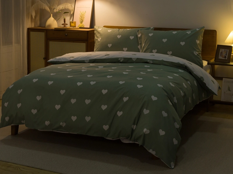 Francúzske bavlnené Renforcé obliečky SRDCOVKA DUO - biele/tmavo zelené