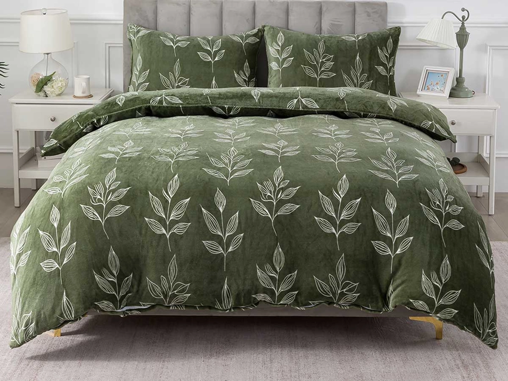 Zelené obliečky 200x220 cm pre prírodný štýl spálne a teplo v mikroplyši