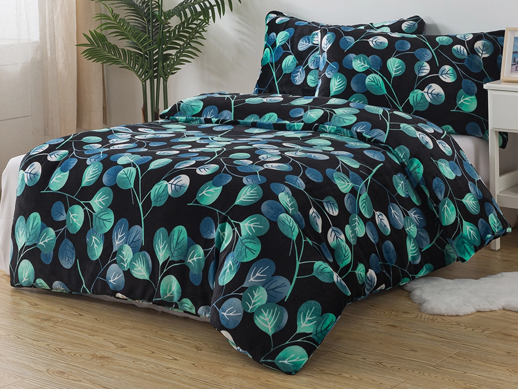 Prírodný motív a mikroplyšové obliečky je to čo hľadáte? Listy eukalyptu v tóne modrej a zelenej farby na čiernom podklade osvieži interiér spálne, a huňatý materiál obliečok z mikroplyšu vás krásne zahreje už na prvý dotyk. Ľahkosť listov blahovičníka navodí v miestnosti pocit splynutia s prírodou. Samozrejmosťou je príjemný a odolný materiál mikroplyšu so stálosťou farieb i tvaru. Oceníte tiež praktické zapínanie na zips a jednoduchú údržbu, kedy obliečky po vypraní rýchlo schnú.