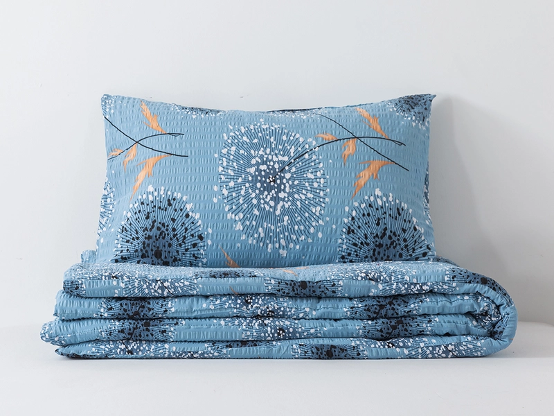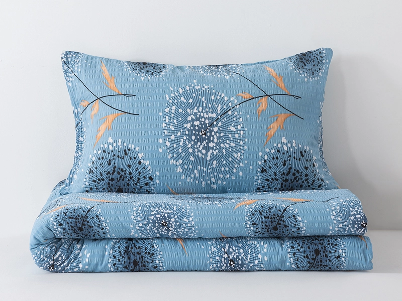 Modré obliečky v krepe a vzor púpav pre dokonalé pohodlie v bavlne