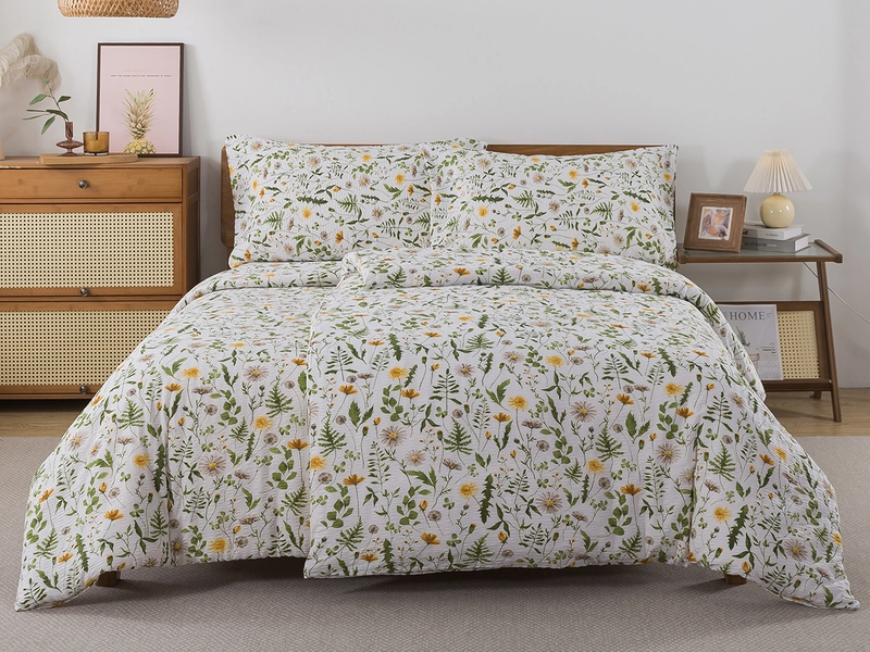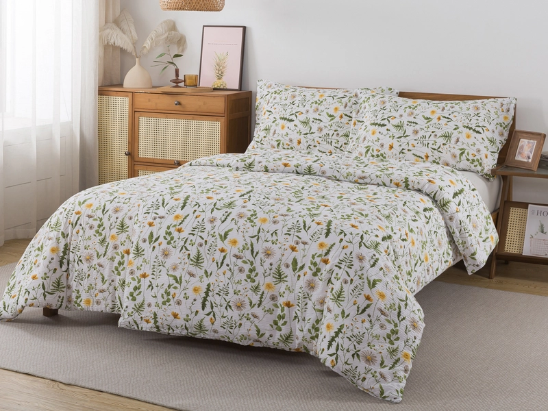 Krepové obliečky s motívom púpav v zelených a žltých farbách na bielom podklade sú ideálnou voľbou pre svieži jarný a letný dizajn spálne. Prírodný kvetinový vzor pôsobí ľahko a vzdušne. Obliečky sú vyrobené zo 100 % bavlny s krepovou úpravou, ktorá je priedušná, savá a príjemná na dotyk. Praktické zapínanie na zips zabezpečuje jednoduché prezliekanie obliečok a nenáročnú údržbu bez žehlenia. Rozmer je vhodný pre prikrývku 140x200 cm a vankúš 70x90 cm.