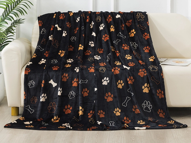 Mikroplyšová deka LABKY - čierna 200 x 220 cm