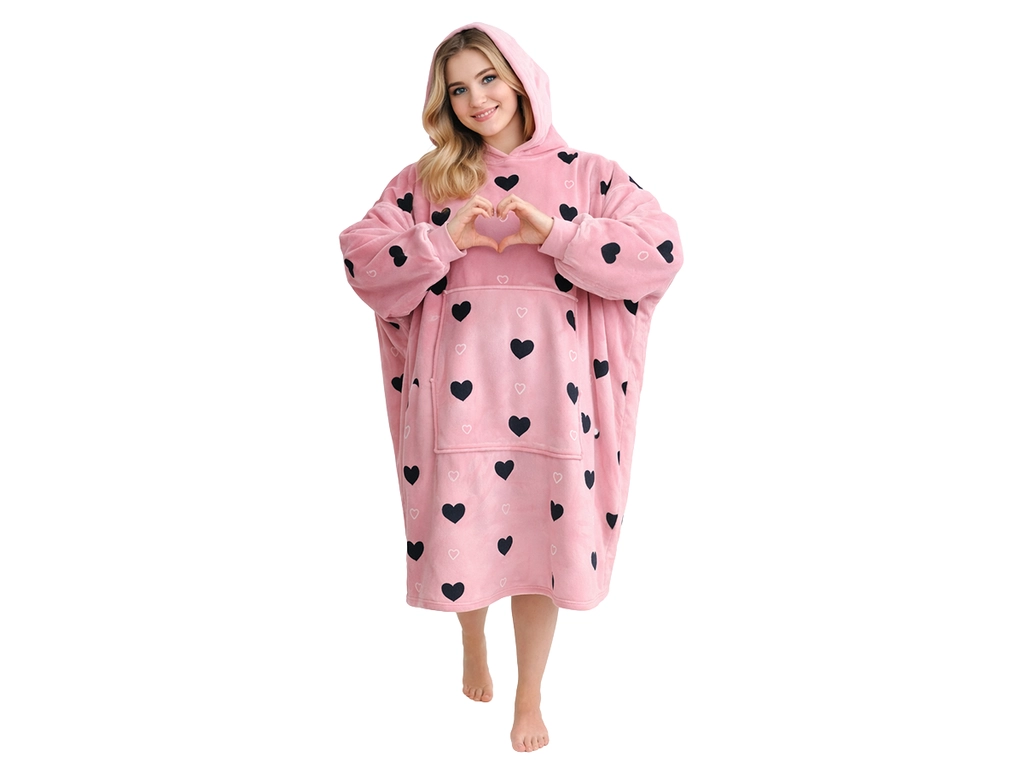 Mikinové deky a vzor srdiečok rozžiaria romantické duše. Tieto deky sú navyše veľmi mäkké, krásne hrejivé a pohodlné na nosenie po celý deň. Deka s rukávmi a kapucňou vás príjemne zahreje vrstvou mikroplyšu a baránku, a to pokojne pri televízii, pri čítaní knižky, alebo rovnako ako mikroplyšová deka, tak aj teplá mikina dobre poslúži na terase za chladného počasia. Táto oversize mikina má UNI veľkosť (rozmery viď fotografie) a dopraje pohodlie pre ženy, tak aj pre mužov. Sú veľmi ľahké aj skladné, a tak si ich môžete pribaliť spoločne so županom a mať pohodlie aj na dovolenke či na chate. A údržba? Mikinové deky stačí vyprať, vysušiť pokojne aj s použitím sušičky na jemný program s nižšou teplotou a opäť sa môžete zababušiť do teplúčka mikroplyšu.