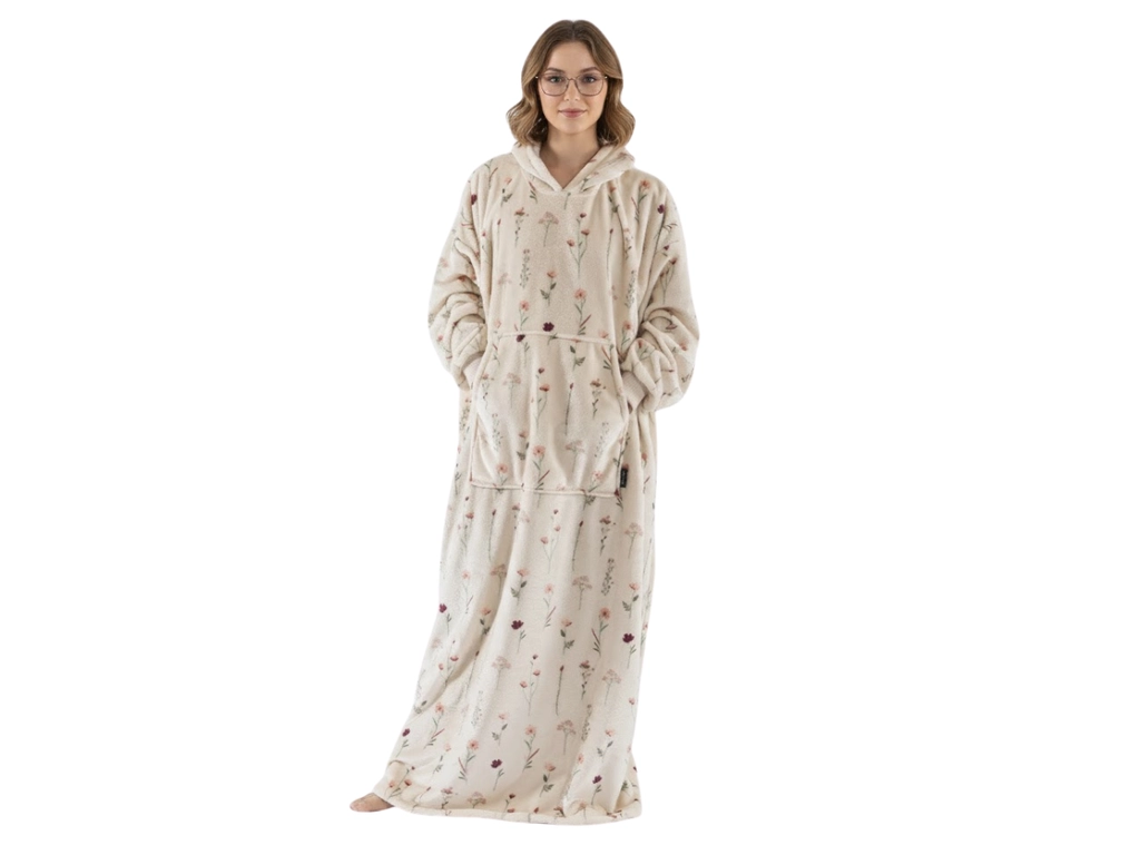 Mikinové deky a vzor vlčie maky sú nielen veľmi mäkké a pohodlné na dotyk, čo ich robí obľúbenými pri relaxácii po celý deň, ale potešia s kvetovaným dezénom na teplom tóne béžovej ferby aj na oko. Deka s rukávmi a kapucňou vás príjemne zahreje vrstvou mikroplyšu, a to pokojne pri televízii, pri čítaní knižky, alebo rovnako ako mikroplyšová deka, tak aj teplá mikina dobre poslúži na terase za chladného počasia. Táto oversize mikina má UNI veľkosť (rozmery viď fotografie) a dopraje pohodlie pre ženy aj pre mužov. Sú veľmi ľahké aj skladné, a tak si ich môžete pribaliť spoločne so županom a mať pohodlie aj na dovolenke či na chate. A údržba? Mikinové deky stačí vyprať, vysušiť pokojne aj s použitím sušičky na jemný program s nižšou teplotou a opäť sa môžete zababušiť do teplúčka.
