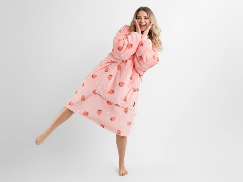 Relax je pre vás dôležitý? Mikinové deky vám doprajú hodiny a hodiny pohodlia, teplúčka aj príjemné mäkkosti a jemnosti na dotyk. Jahody a ružová farba vám rozveselí aj chladný jesenný deň. Predĺžená deka s rukávmi a kapucňou vás príjemne zahreje vrstvou mikroplyšu, a to pokojne pri televízii, pri čítaní knižky, alebo rovnako ako mikroplyšová deka, tak aj teplá mikina dobre poslúži na terase za chladného počasia. Táto oversize mikina má UNI veľkosť (predĺžené rozmery viď fotografie) a dopraje pohodlie jak pre ženy, tak aj pre mužov. Sú veľmi ľahké aj skladné, a tak si ich môžete pribaliť spoločne so županom a mať pohodlie aj na dovolenke či na chate. A údržba? Mikinové deky stačí vyprať, vysušiť pokojne aj s použitím sušičky na jemný program s nižšou teplotou a opäť sa môžete zababušiť do teplúčka.