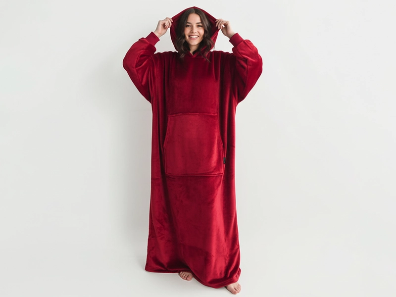 Mikinové deky vás ako huňatí hrejivý plyšiaci, zahalia svojou jemnosťou od hlavy, až po päty. Krásna farba vínová a zamatový vzhľad mikroplyšu sa hodí nielen k odpočinku ako obria deka k televízii, ale aj pri posedení s priateľmi za chladných večerov. Voľný UNI strih pristane každej postave, a navyše má táto mikina s kapucňou praktické zakončenie rukávov na gumičku, a tak vám nebudú prekážať pri žiadnej zábave. Vrecko klokanového typu zahreje ruky a schová potrebné drobnosti. Veľká mikina či nositeľná deka poslúži pokojne aj celoročne. Tak ako mikroplyšové deky či baránkové deky aj mikinodeky spoľahlivo zahrejú všade a kedykoľvek vám bude zima. Mikroplyšové mikiny stačí len vyprať a vysušiť. Materiál s jemným chĺpkom nestráca farbu, nemení tvar, a preto vám bude dobre slúžiť a robiť radosť po dlhú dobu.