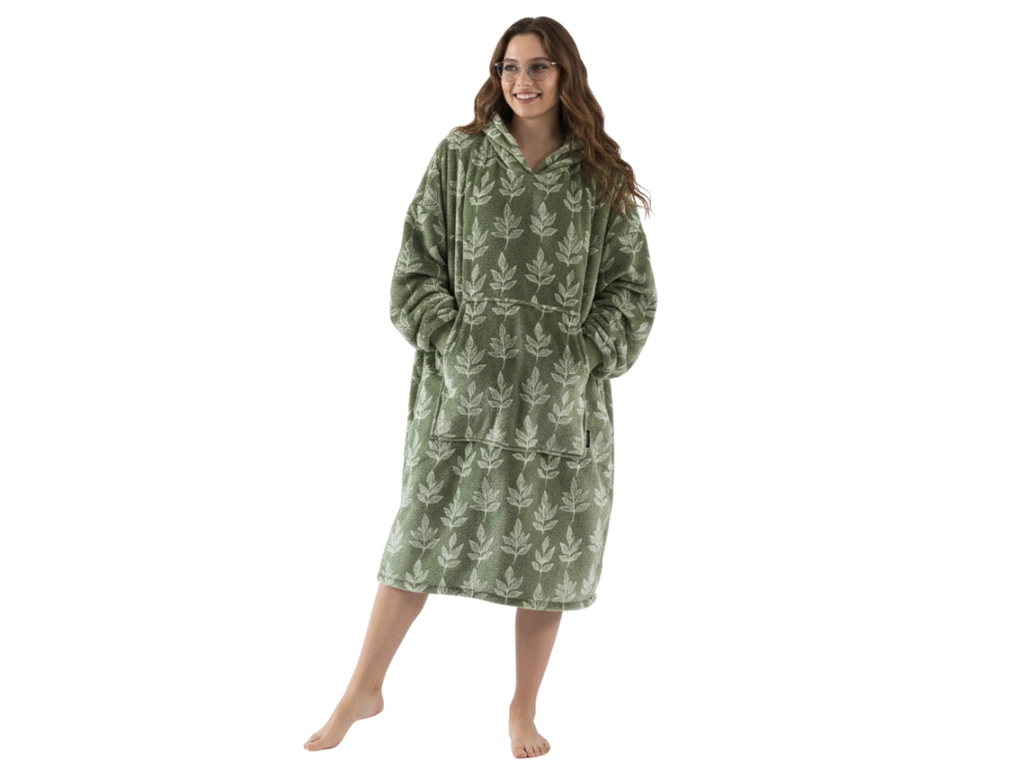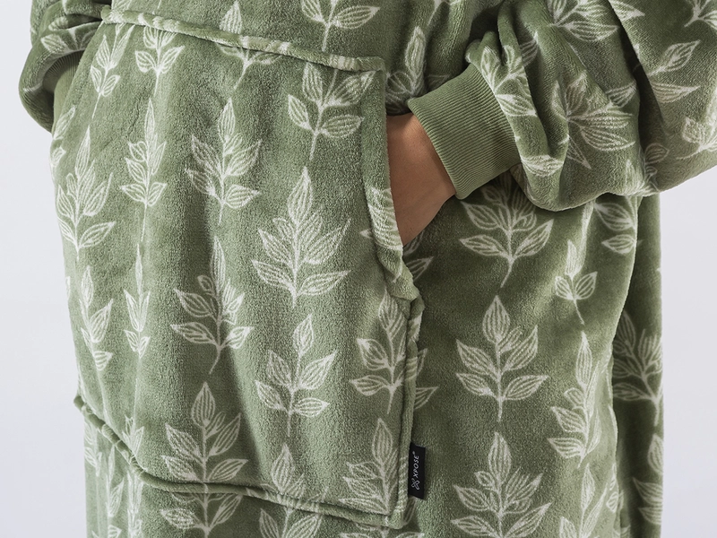 Mikinové deky a vzor RASTLINY sú nielen veľmi mäkké a pohodlné na dotyk, čo ich robí obľúbenými pri relaxácii po celý deň, ale potešia aj na oko s rastlinným dezénom na olivovom podklade. Deka s rukávmi a kapucňou vás príjemne zahreje dvojakou vrstvou mikroplyšu s baránkom, a to pokojne pri televízii, pri čítaní knižky, alebo rovnako ako mikroplyšová deka, tak aj teplá mikina dobre poslúži na terase za chladného počasia. Táto oversize mikina má UNI veľkosť (rozmery viď fotografie) a dopraje pohodlie pre ženy aj pre mužov. Sú veľmi ľahké aj skladné, a tak si ich môžete pribaliť spoločne so županom a mať pohodlie aj na dovolenke či na chate. A údržba? Mikinové deky stačí vyprať, vysušiť pokojne aj s použitím sušičky na jemný program s nižšou teplotou a opäť sa môžete zababušiť do teplúčka.