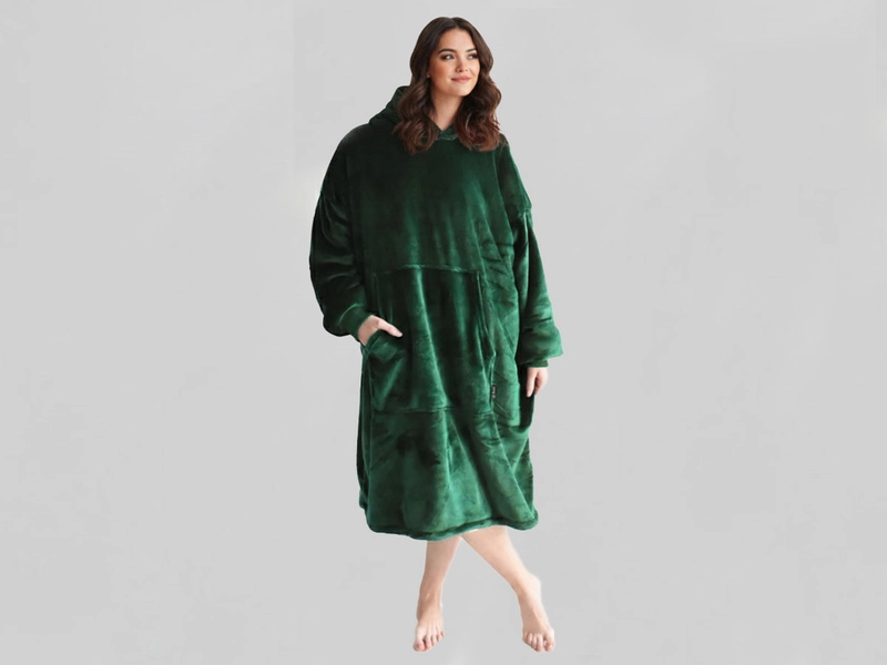 Mikinové deky sú hodvábne jemné a mäkké na dotyk, a v zelenej farbe s bielym barančekom sú nepostrádateľnými pri relaxácii pokojne aj po celý deň. Deka s rukávmi či deka s kapucňou vás príjemne zahreje dvojitou vrstvou mikroplyšu a baránka pri čítaní knižky aj pri televízii ako TV deka. Teplá mikina má navyše vrecko na bruchu tzv. klokanku, ktoré vám zahreje aj studené ruky a spoľahlivo tak poslúži napríklad aj na terase za chladného počasia. Táto oversize mikina má univerzálnu veľkosť (rozmery viď fotografie) a skvele sa hodí pre ženy i pre mužov. Ľahkosť a skladnosť materiálu oceníte aj na dovolenke či na chate, kde bude deková mikina vašim huňatým parťákom. S údržbou si hlavu nelámte. Mikinová deka a sýta zelená farba v kombinácii s bielym baránkom sa dá ľahko vyprať, vysušiť voľne, alebo v sušičke na jemný program s nižšou teplotou a opäť bude ako nová.