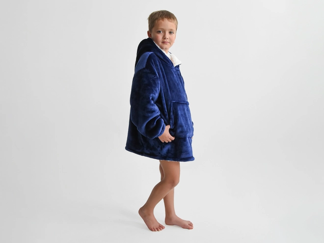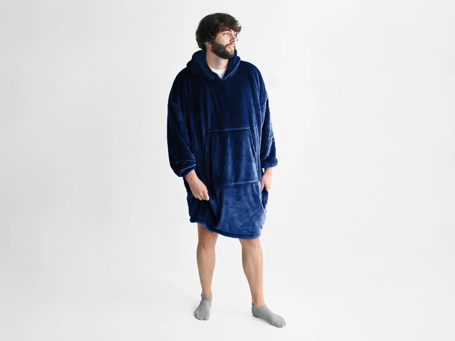 Mikroplyšová mikinová deka - tmavo modrá