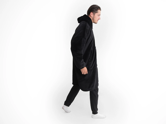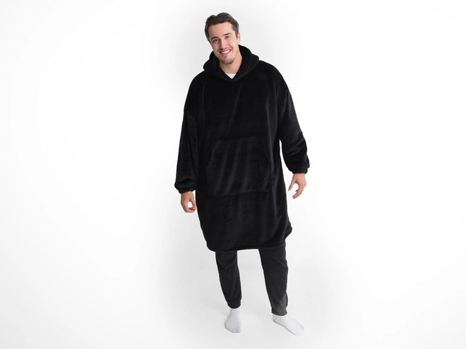 Mikroplyšová mikinová deka - čierna