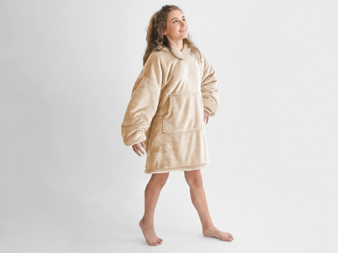 Detská mikinová deka s barančekom (velká) - biela káva