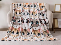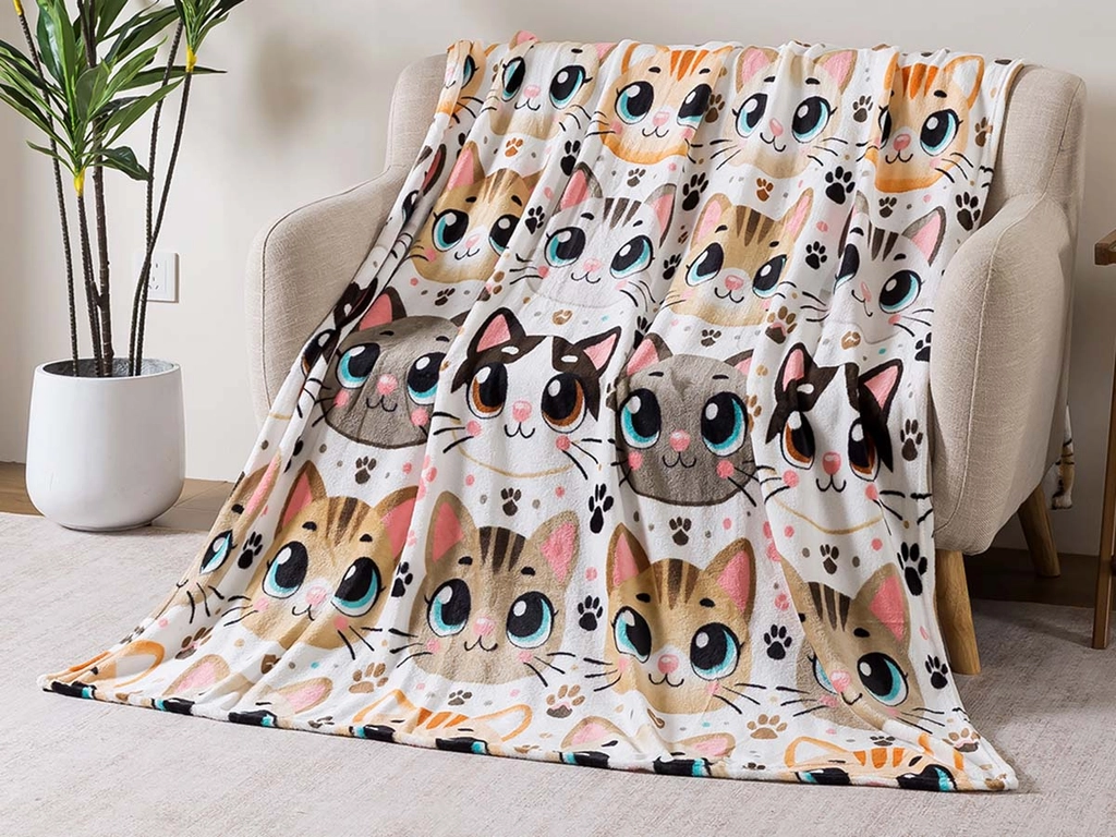 Plyšová deka so vzorom mačiek 140x200 cm pre zahriatie aj parádu