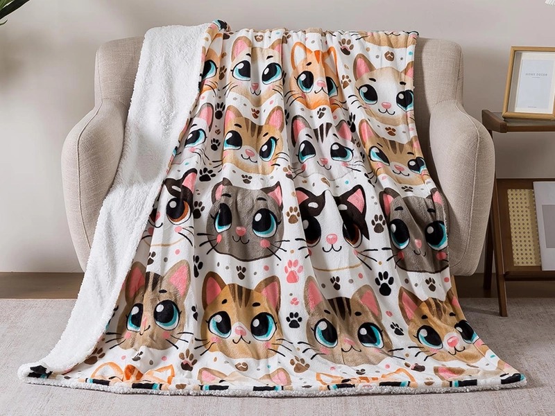 Barančeková deka so vzorom mačiek 140x200 cm pre zahriatie aj parádu