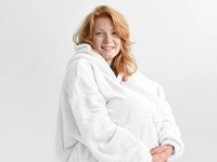 Mikinové deky sú veľmi mäkké a pohodlné na dotyk, čo ich robí obľúbenými pri relaxácii po celý deň. Deka s rukávmi či deka s kapucňou vás príjemne zahreje vrstvou mikroplyšu, a to pokojne pri televízii, pri čítaní knižky, alebo rovnako ako mikroplyšová deka, tak aj teplá mikina dobre poslúži na terase za chladného počasia. Táto oversize mikina má UNI veľkosť (rozmery viď fotografie) a dopraje pohodlie ako pre ženy, tak aj pre mužov. Sú veľmi ľahké aj skladné, a tak si ich môžete pribaliť rovnako ako mikroplyšové župany a mať pohodlie aj na dovolenke či na chate. A údržba? TV deka je nenáročná stačí ju vyprať, vysušiť pokojne aj s použitím sušičky na jemný program s nižšou teplotou a opäť sa môžete zababušiť do teplúčka. Hrejivá mikinová deka a biela farba rozjasní každý váš deň.