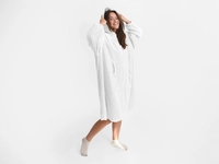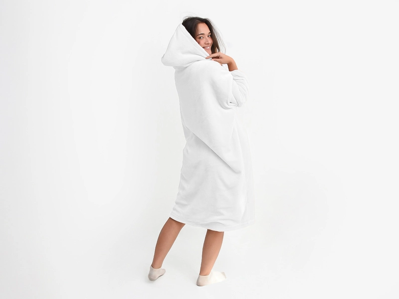 Mikinové deky sú veľmi mäkké a pohodlné na dotyk, čo ich robí obľúbenými pri relaxácii po celý deň. Deka s rukávmi či deka s kapucňou vás príjemne zahreje vrstvou mikroplyšu, a to pokojne pri televízii, pri čítaní knižky, alebo rovnako ako mikroplyšová deka, tak aj teplá mikina dobre poslúži na terase za chladného počasia. Táto oversize mikina má UNI veľkosť (rozmery viď fotografie) a dopraje pohodlie ako pre ženy, tak aj pre mužov. Sú veľmi ľahké aj skladné, a tak si ich môžete pribaliť rovnako ako mikroplyšové župany a mať pohodlie aj na dovolenke či na chate. A údržba? TV deka je nenáročná stačí ju vyprať, vysušiť pokojne aj s použitím sušičky na jemný program s nižšou teplotou a opäť sa môžete zababušiť do teplúčka. Hrejivá mikinová deka a biela farba rozjasní každý váš deň.