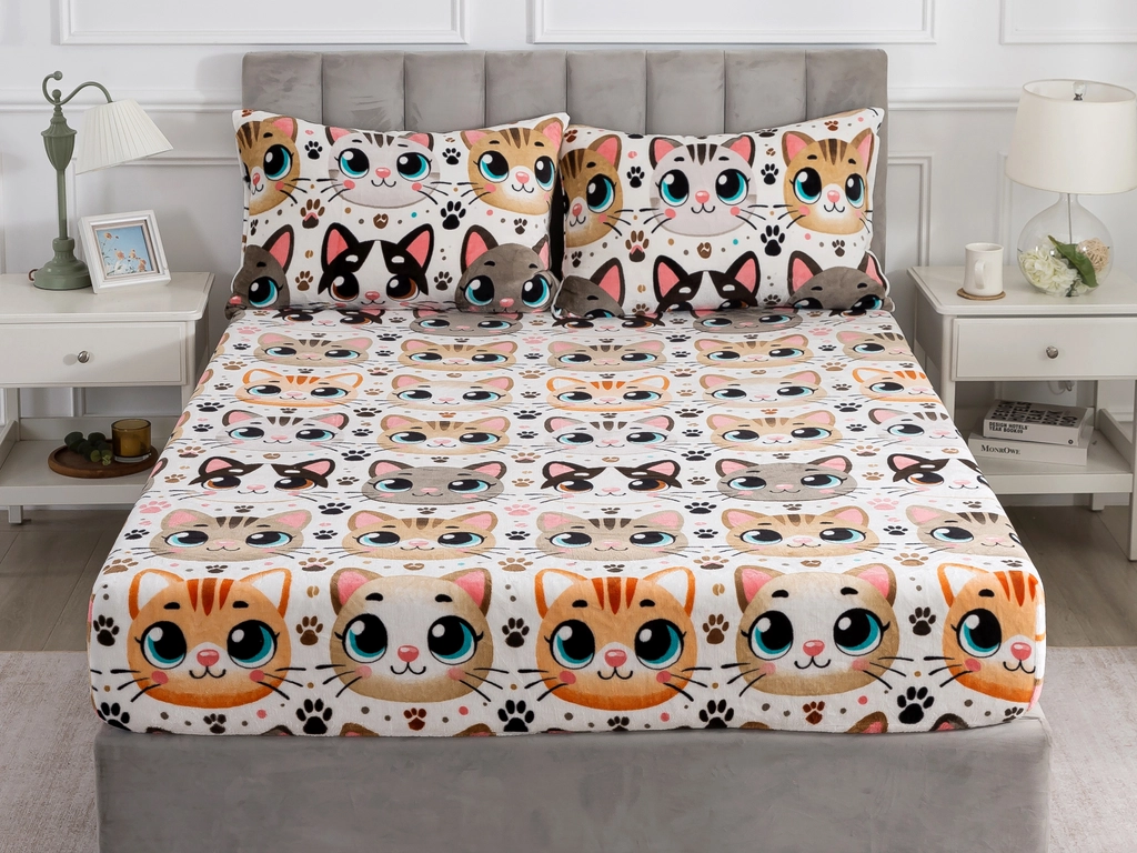 Roztomilý dizajn mačiek a mikroplyšová plachta vám hrejivou jemnosťou spríjemní každý odpočinok. Táto plachta 180x200 cm s veselým dezénom doladí spálňu i detskú izbu, je ideálna aj ako darček pre milovníkov zvierat a zaiste poteší malých aj veľkých. Pýtate sa, prečo je mikroplyš tak obľúbený? Máme pre vás odpovede! Nepúšťa chlpy. Nežmolkuje. Rýchlo schne. Biele prestieradlo so vzorom a materiál s chĺpkom má stále farby aj tvar as dlhou životnosťou zostane krásne nadýchané aj po mnohých praniach. Všitá guma po obvode mikroplyšové plachty skvele vypne a udrží ich na matraci. Zababušte sa, a mikroplyš vám prinesie tie najkrajšie sny.