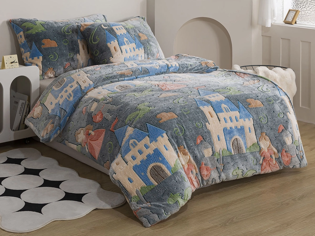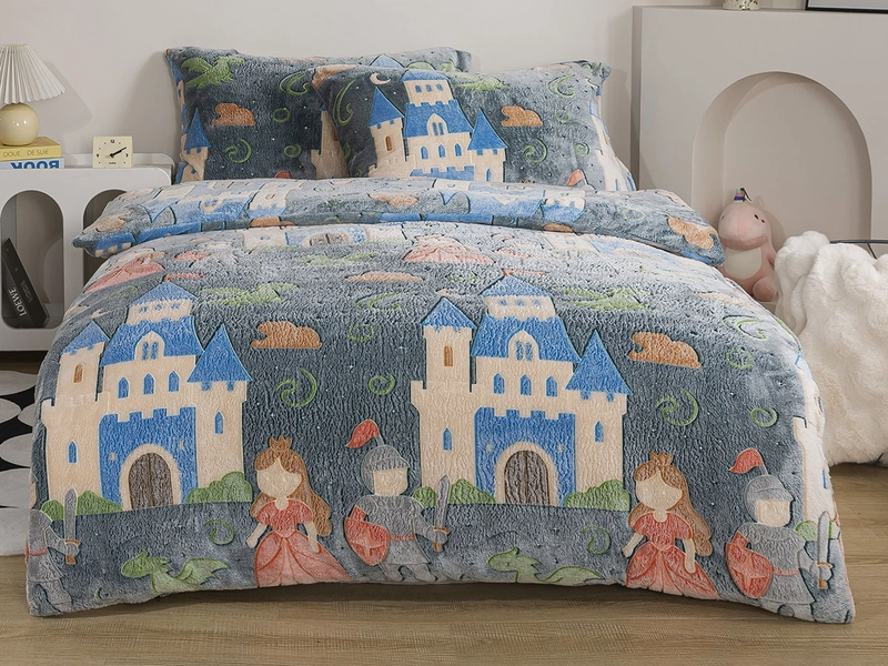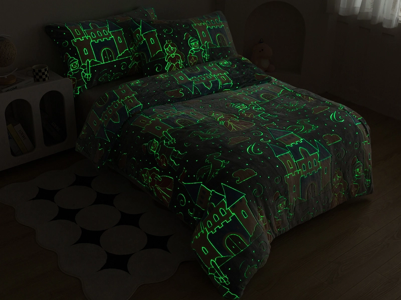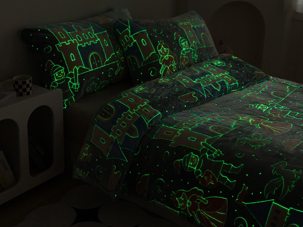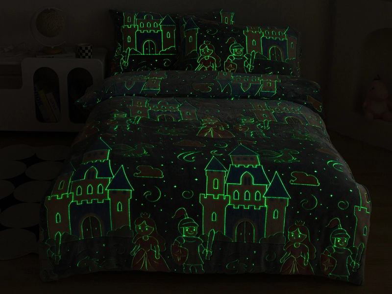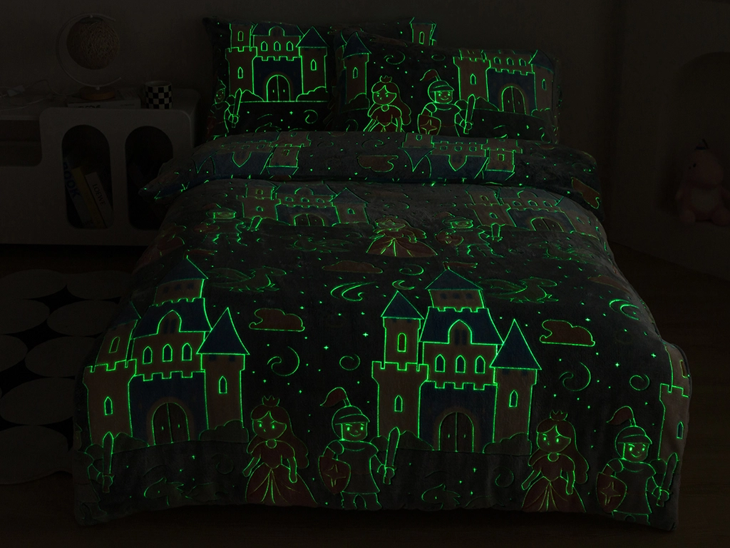 Obliečky pre všetky malé slečny, ktoré snívajú o zámku, drakoch a rytieroch. Tieto mikroplyšové obliečky rozveselia s kombináciou farieb zelenej, žltej a oranžovej každú detskú izbu. Po dlhom dni plnom hier i náučných situácií si každá princezná zaslúži objatie ako od plyšového medvedíka a spánok ako na obláčiku. Mikroplyš je na to priam stvorený! Je hodvábne jemný, príjemne mäkký s hrejivým a upokojujúcim efektom. Nielen na dotyk si získa každé dieťa, ale hneď po zhasnutí svetla zaujme svietiaci vzor, ktorý vyženie všetkých bubákov z izby. Oceníte ľahkú údržbu bez žehlenia, stálej farby aj materiál bez žmolkov. Obliečky 140x200 cm sa hodia na klasické jednolôžko a so zapínaním na zips ho ľahko povlečiete aj na našu ponuku lôžkovín.