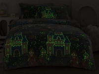 Obliečky pre všetky malé slečny, ktoré snívajú o zámku, drakoch a rytieroch. Tieto mikroplyšové obliečky rozveselia s kombináciou farieb zelenej, žltej a oranžovej každú detskú izbu. Po dlhom dni plnom hier i náučných situácií si každá princezná zaslúži objatie ako od plyšového medvedíka a spánok ako na obláčiku. Mikroplyš je na to priam stvorený! Je hodvábne jemný, príjemne mäkký s hrejivým a upokojujúcim efektom. Nielen na dotyk si získa každé dieťa, ale hneď po zhasnutí svetla zaujme svietiaci vzor, ktorý vyženie všetkých bubákov z izby. Oceníte ľahkú údržbu bez žehlenia, stálej farby aj materiál bez žmolkov. Obliečky 140x200 cm sa hodia na klasické jednolôžko a so zapínaním na zips ho ľahko povlečiete aj na našu ponuku lôžkovín.
