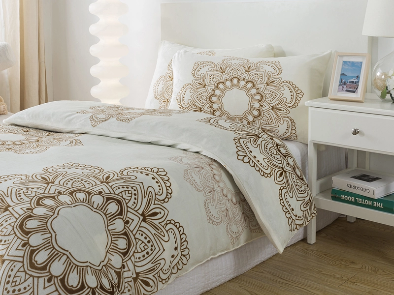 Béžové obliečky z mikroplyšu a mandaly pre harmóniu a príjemné teplo