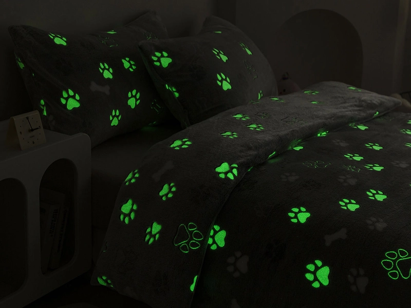 Svietiace plyšové obliečky a vzor labiek pre milovníkov zvieracích maznáčikov a spánku