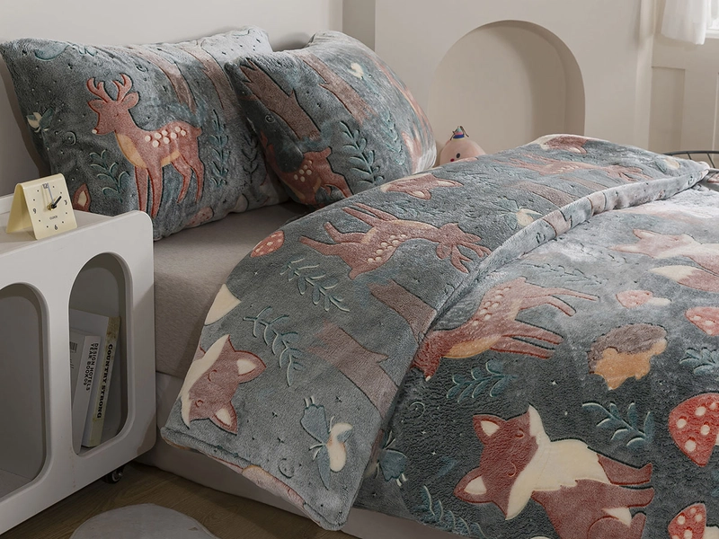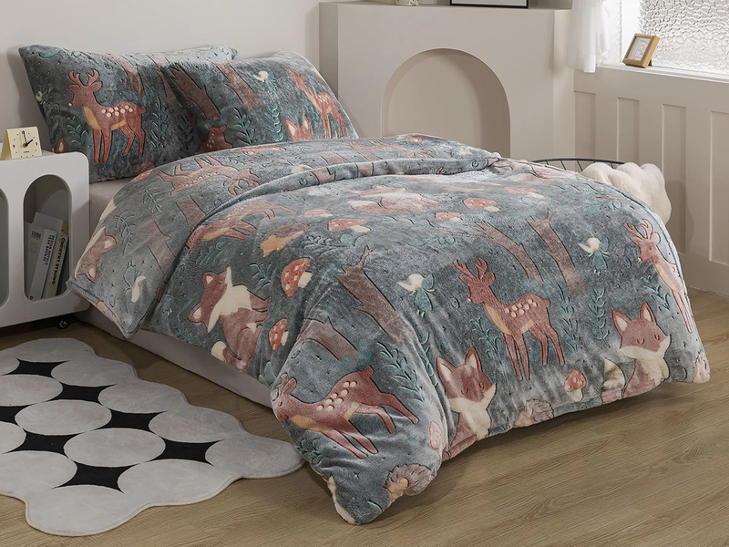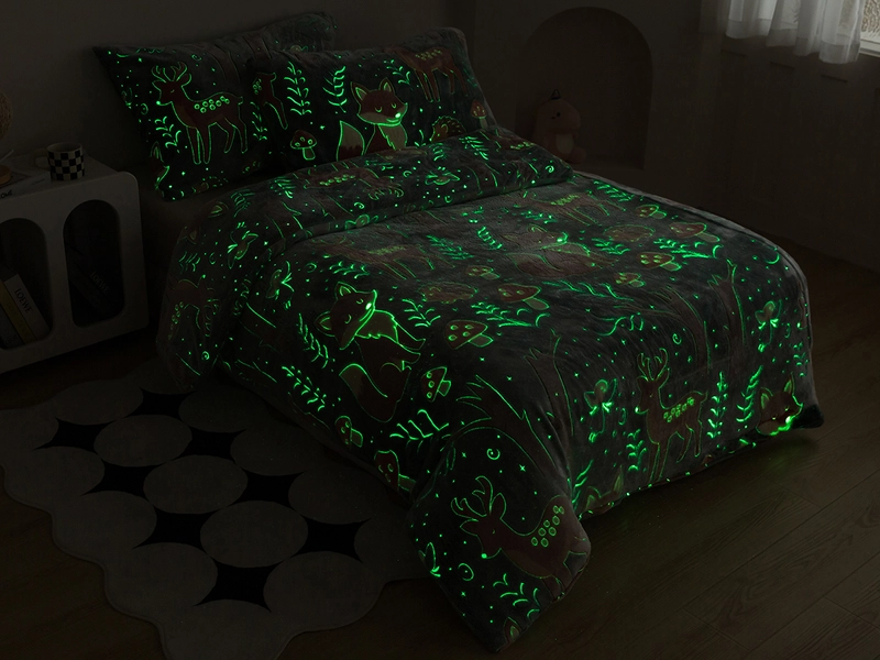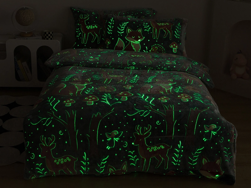 Svítící mikroplyšové povlečení a vzor lesních zvířátek pro spánek v hřejivém objetí