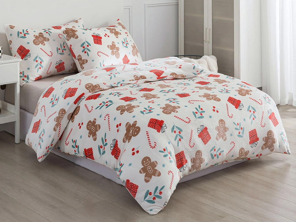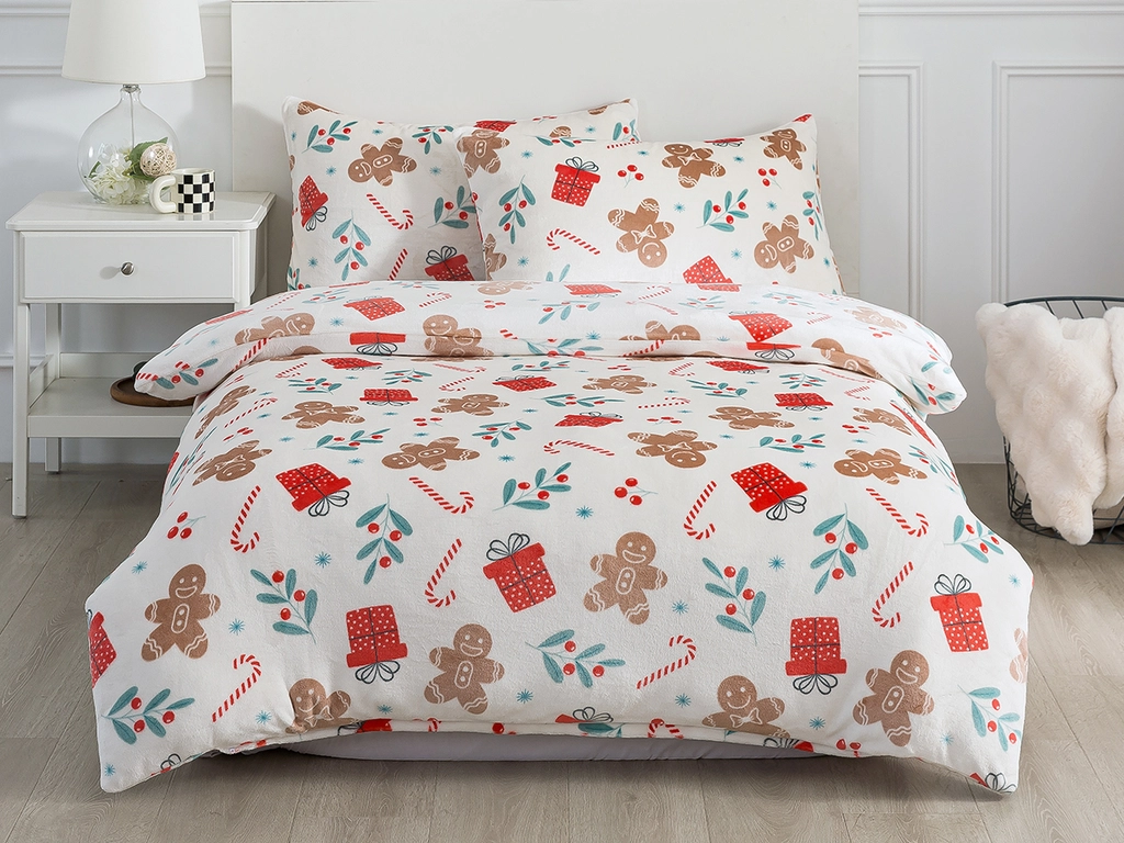 Obliečky klasickú posteľ so vzorom perníčku pre vianočnú pohodu v mikroplyši