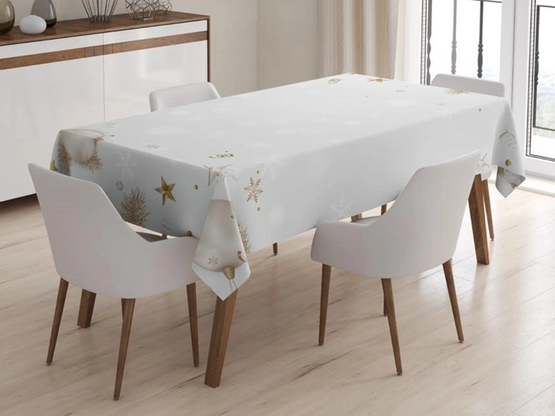 Biele obrusy s vianočným vzorom dokážu navodiť slávnostnú atmosféru v kuchyni či jedálni. Nielenže prispejú k štýlovému stolovaniu, ale účinne ochránia povrch stola proti poškriabaniu. Teflónový obrus ľahko vyperiete, rýchlo vysušíte a je opäť nachystaný skrášliť vašu domácnosť a spríjemniť vám vzácne chvíle strávené s rodinou. Spodná strana obrusu je biela, kraje sú ukončené ozdobným oblúčikovým zastrihnutím bez obšitia.